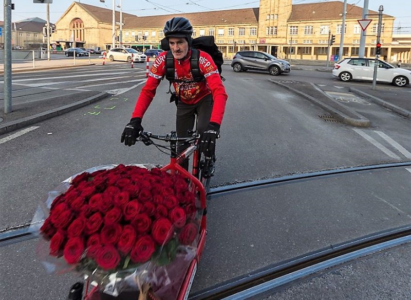 Am Valentinstag ist Eric mit dem Velo unterwegs.
